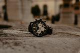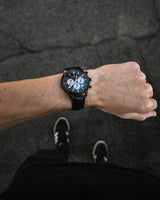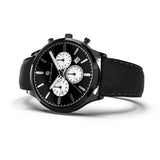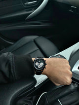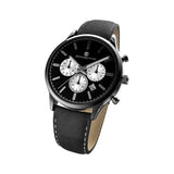 Dial details- Black dial with silver sub-dials, markers, & hands.